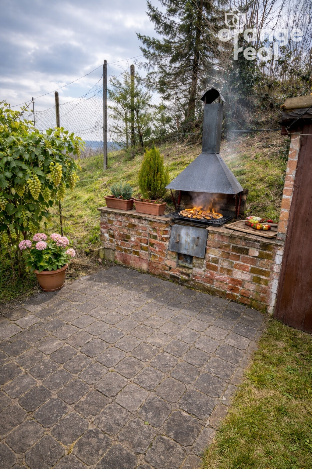 Na pozemku sa nachádza hned pri vstupe prístrešok pre auto, vedľa chaty je murovaný gril a sklad náradia, može slúžiť aj ako pivnica, nakoľko je vstavaná do kopca. V zadnej časti je drevená búda so suchou toaletou a menším skladom náradia. Vedľa neho kompostovisko. Pozemok nie je rovinatý. Nachádza sa ňom množstvo kvetov a ruží, hrozno, ovocné kríky, a ovocné stromy. Samozrejme aj okrasná zeleň.
