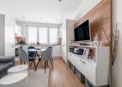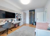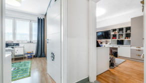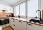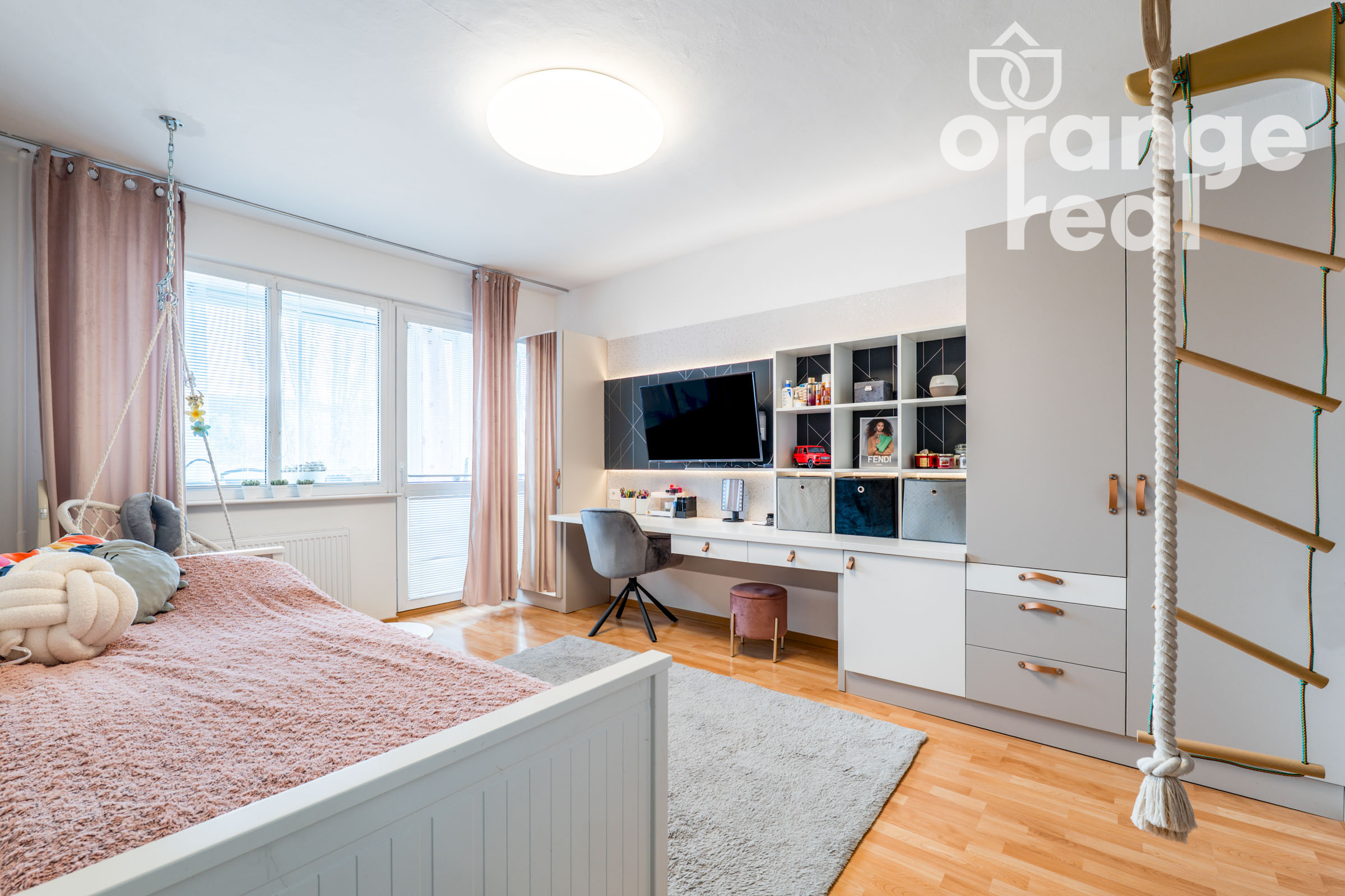 Byt prešiel kompletnou rekonštrukciou. Bytové jadro - kúpeľňa a WC, plastové okná, elektroinštalácia - boli zrekonštruované už dávnejšie. Pred 2 rokmi došlo k dizpozičnej zmene, keď presunom kuchynskej linky do obývačky vznikol z 3-izbového bytu 4-izbový - z pôvodnej kuchyne je menšia samostatná spálňa. Dispozične pozostáva zo vstupnej chodby, samostatného WC, kúpeľne, troch spální , kuchyne spojenej s obývačkou, šatníka, loggie a pivnice na prízemí. Jeho výmera je 66 m2 a orientácia východ - západ.